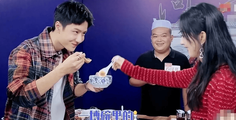 比如同吃一碗食物的时候,王一博低头看向赵丽颖,脸上的笑容是藏也藏不住。