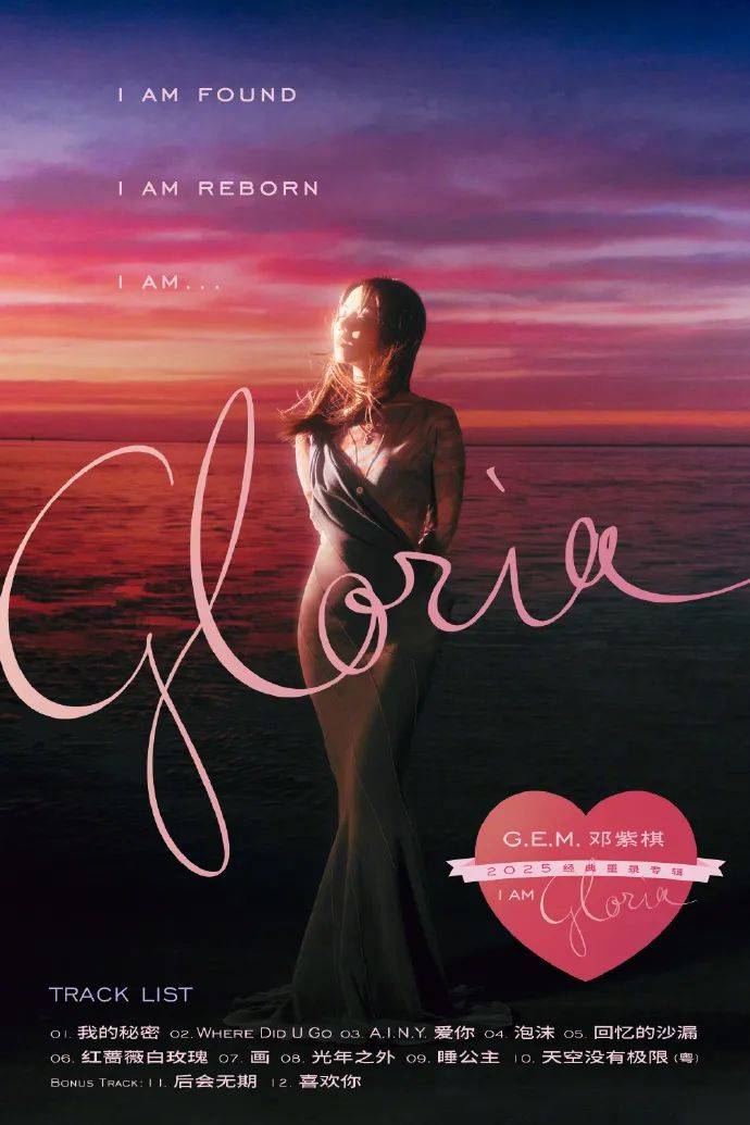 邓紫棋宣布重录专辑《I AM GLORIA》全网上线,以“死而复活、失而复得”为主题,收录《泡沫》《光年之外》等12首经典作品,真是可喜可贺!